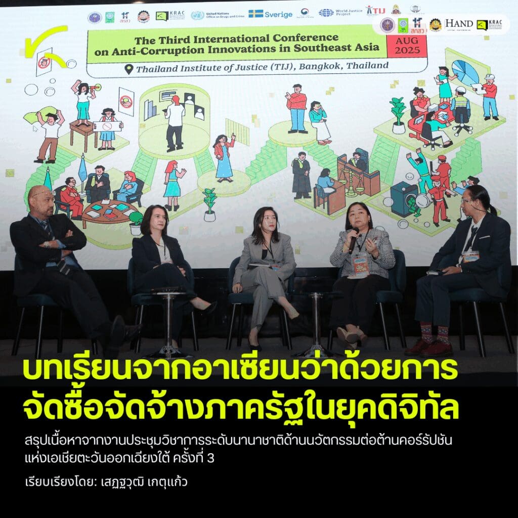 สรุปบทเรียนจากอาเซียนเกี่ยวกับความโปร่งใสในระบบจัดซื้อจัดจ้างรัฐยุคดิจิทัล พร้อมมุมมองจากผู้เชี่ยวชาญไทย–ฟิลิปปินส์–อินโดนีเซีย–มาเลเซีย ที่ชี้ว่าความโปร่งใสคือหัวใจของการต่อต้านคอร์รัปชันอย่างได้ผล