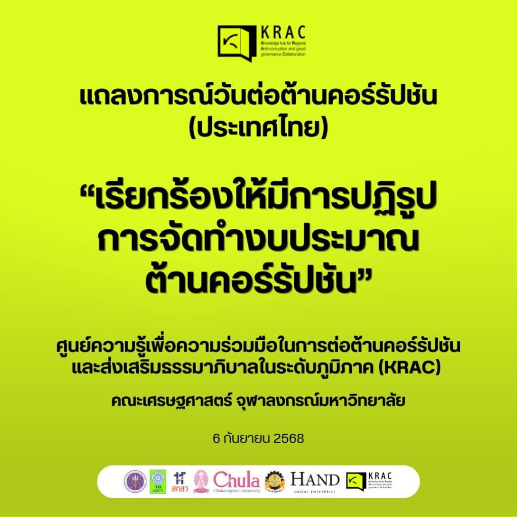 KRAC ออกเเถลงการณ์เรียกร้องให้มีการปฎิรูปการจัดทำงบประมาณต้านคอร์รัปชัน