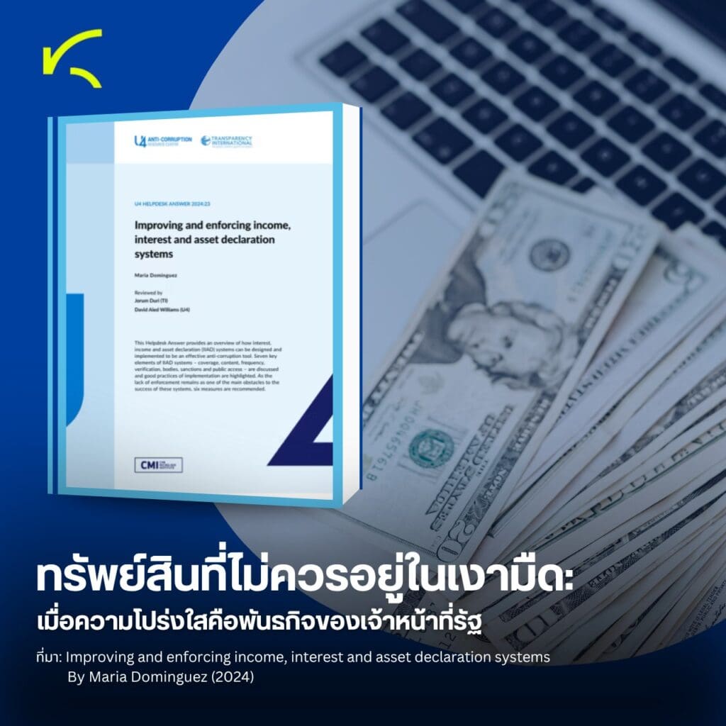 หลายประเทศพัฒนาระบบเปิดเผยรายได้ ผลประโยชน์ และทรัพย์สินของเจ้าหน้าที่รัฐ เพื่อให้ตรวจสอบได้ โปร่งใส และลดผลประโยชน์ทับซ้อน KRAC Extract สรุปงานวิจัย “Improving and Enforcing Income, Interest and Asset Declaration Systems” (2024) ที่ชี้แนวทางสร้างวัฒนธรรมความรับผิดชอบในภาครัฐอย่างยั่งยืน