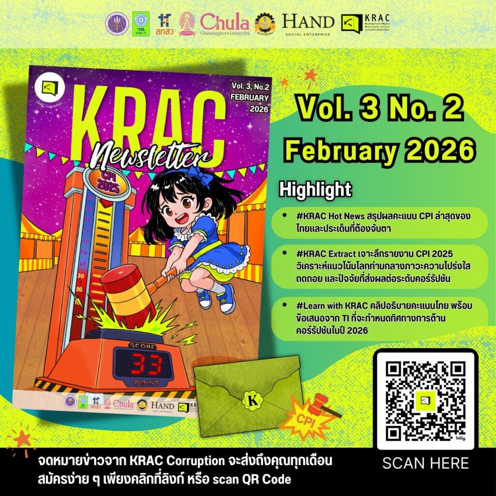 คะแนน CPI ปี 2568 ของไทยลดลงเหลือ 33 คะแนน สะท้อนปัญหาคอร์รัปชันเชิงโครงสร้างที่กระทบเศรษฐกิจ ความเชื่อมั่น และคุณภาพชีวิตประชาชน พร้อมข้อเสนอเชิงนโยบาย 3 ทางออกจาก KRAC เพื่อพลิกโฉมการต่อต้านคอร์รัปชันไทย