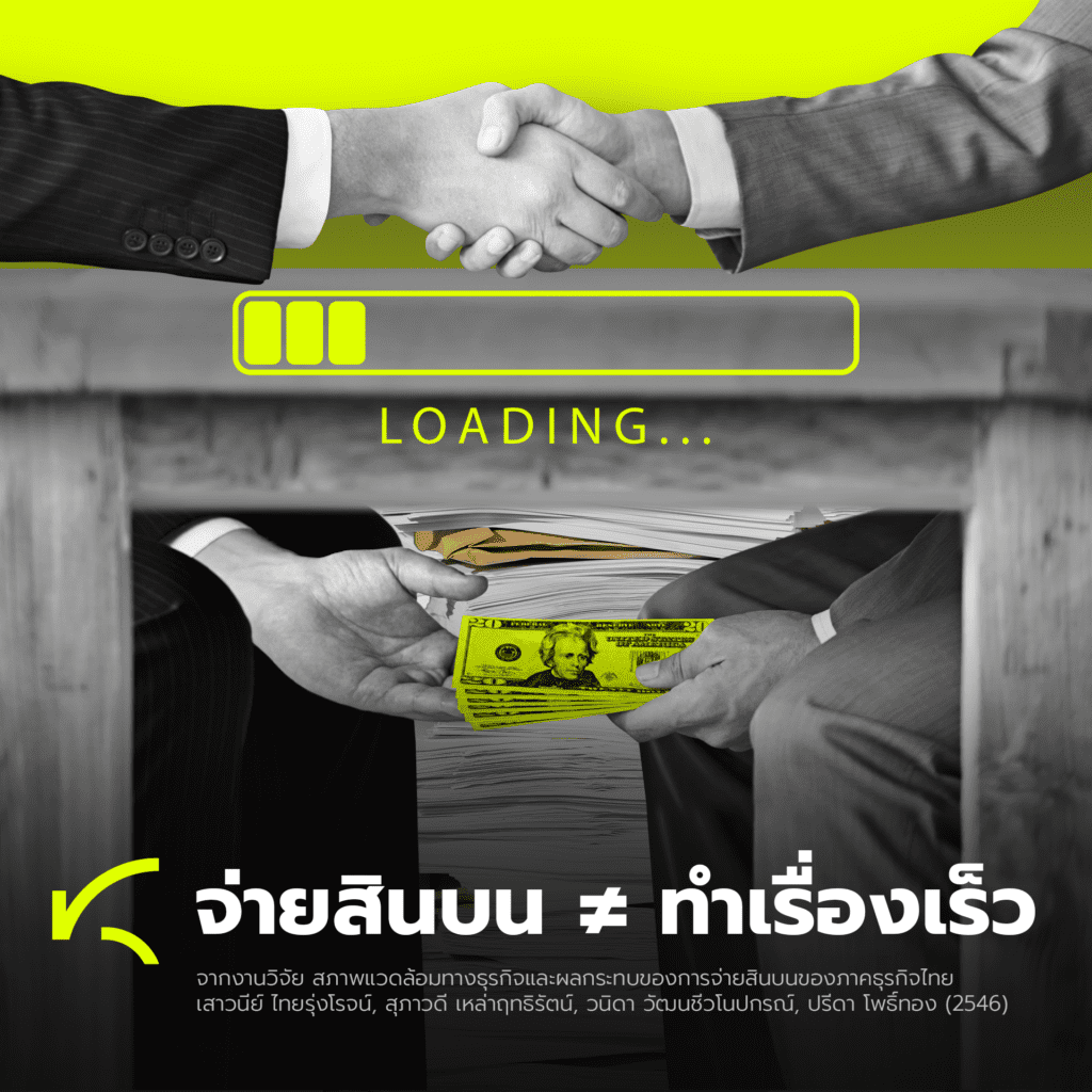 ในการทำธุรกิจ หลายครั้งผู้ที่เป็นเจ้าของกิจการต้องไปติดต่อกับเจ้าหน้าที่รัฐเพื่อดำเนินการ เช่น ทำเรื่องขอค้าขาย ทำเรื่องขอใบจัดตั้งโรงงาน และต้องยอมจ่ายเงิน “สินบน” ให้กับเจ้าหน้าที่เพื่อช่วยให้การทำเรื่องเร็วขึ้น เพราะไม่อย่างนั้นอาจจะต้องรอทำเรื่องเป็นเวลานานหลายเดือน ซึ่งหลายคนก็มองว่าการยอมจ่ายเล็กน้อยเพื่อให้กิจการคล่องขึ้นเป็นเรื่องที่ยอมรับได้