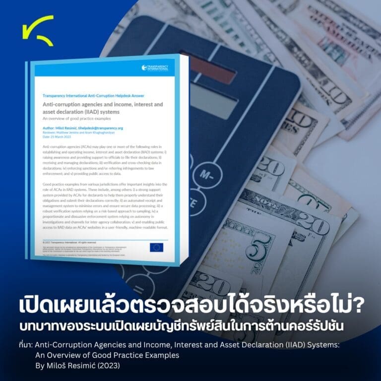KRAC Extract ประจำเดือนนี้ ชวนสำรวจบทบาทของ “การเปิดเผยรายได้ ผลประโยชน์ และทรัพย์สินของเจ้าหน้าที่รัฐ” ผ่าน รายงานเรื่อง “Anti-Corruption Agencies and Income, Interest and Asset Declaration (IIAD) Systems: An Overview of Good Practice Examples” โดย Miloš Resimić (2023) ซึ่งชี้ให้เห็นว่า การยื่นข้อมูลทรัพย์สินคือกลไกสำคัญที่ทำให้การใช้อำนาจรัฐสามารถตรวจสอบได้อย่างเป็นรูปธรรม