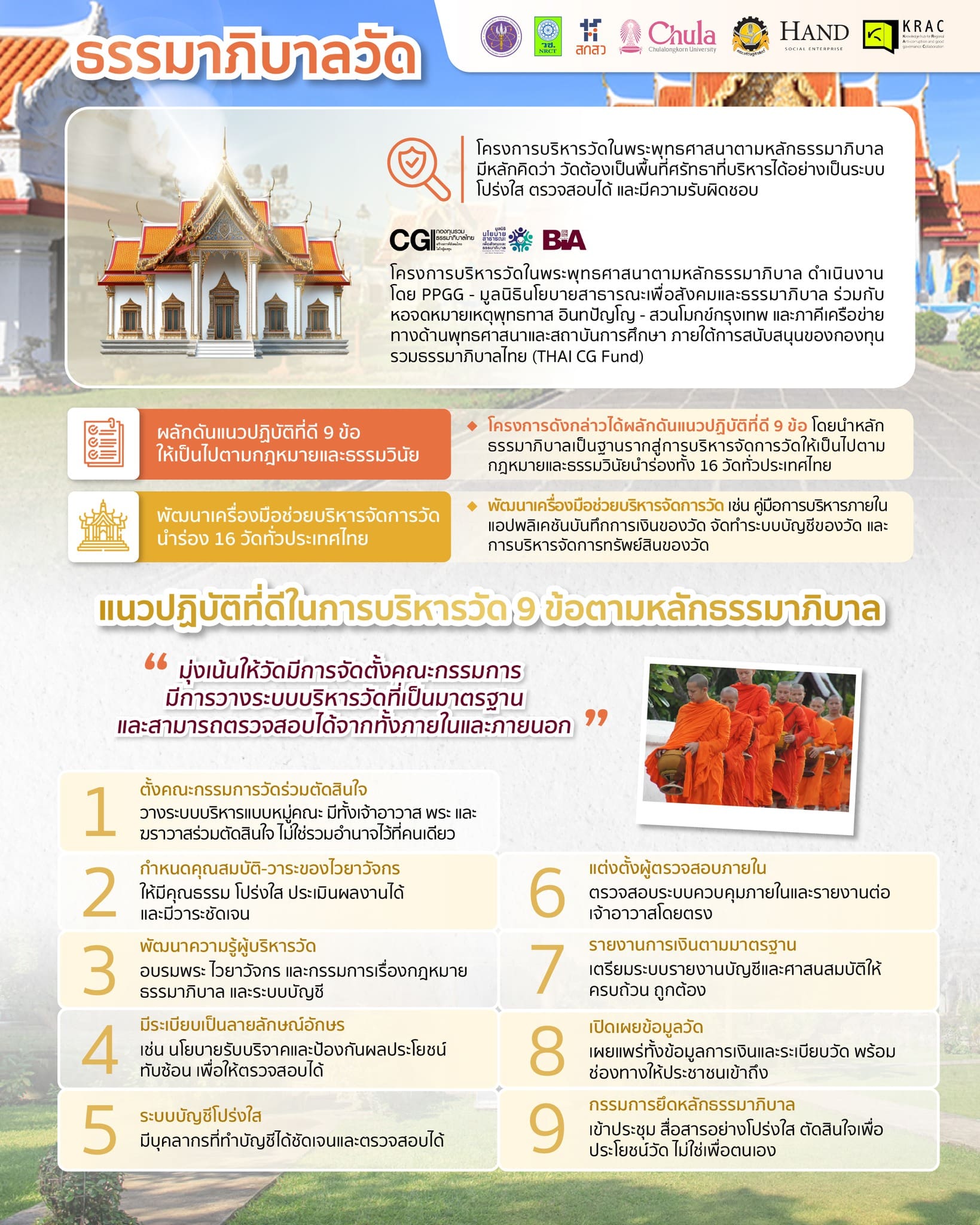 ศูนย์ KRAC ขอนำเสนออินโฟกราฟิกชุดที่ 4 ที่จะพาทุกท่านทำความเข้าใจเกี่ยวกับธรรมาภิบาลวัด ภายใต้ “แนวปฏิบัติที่ดีในการบริหารวัด 9 ข้อตามหลักธรรมาภิบาล”