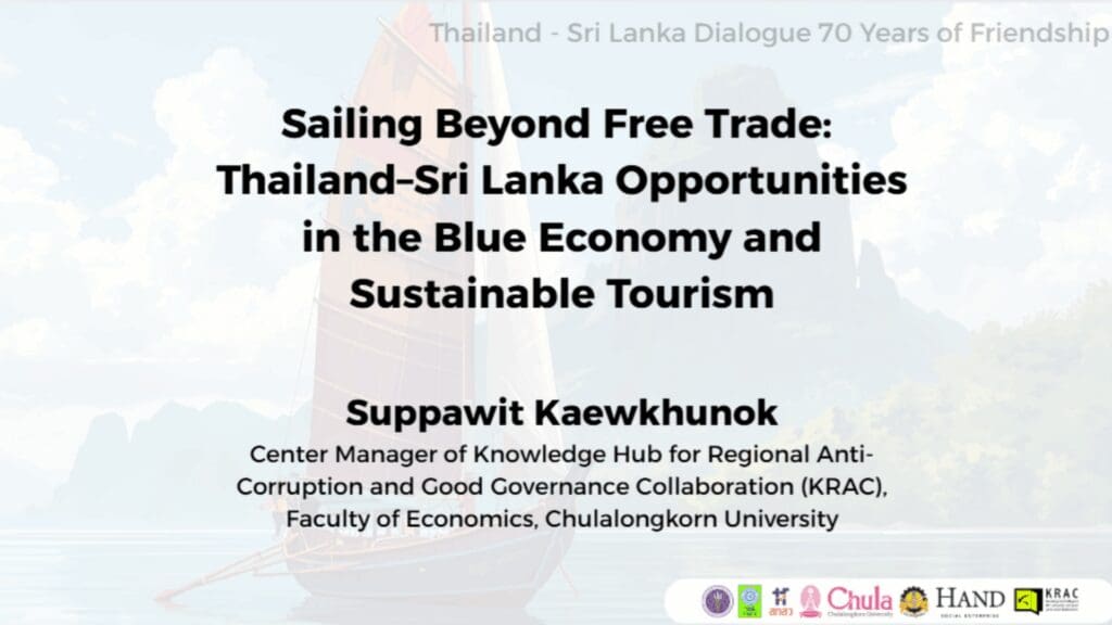 โอกาสนี้ คุณศุภวิชญ์ แก้วคูนอก ได้รับเชิญให้บรรยายในหัวข้อ “Sailing Beyond Free Trade: Thailand–Sri Lanka Opportunities in the Blue Economy and Sustainable Tourism”