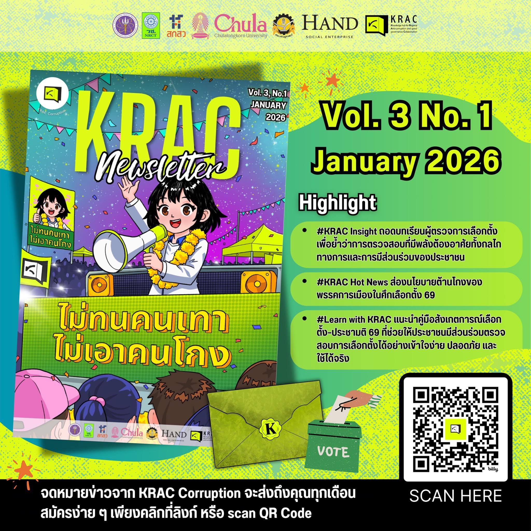KRAC Newsletter Vol. 3 No. 1 ชวนมองการเลือกตั้งผ่านองค์ความรู้และบทเรียนสำคัญ ที่ย้ำว่า ความโปร่งใสของกระบวนการเลือกตั้ง คือเงื่อนไขหลักของการเมืองที่ยึดโยงกับประชาชน